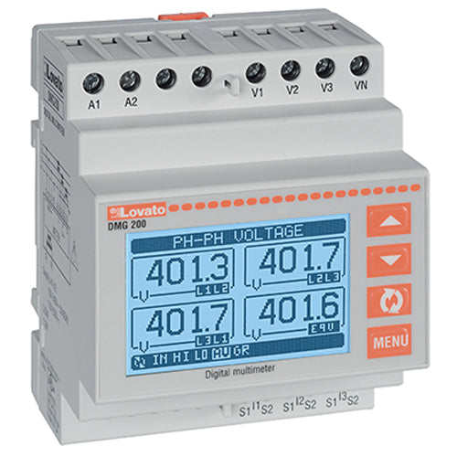 Lovato DMG200L01, Modular LCD Multimeter, Non Expandable, Graphic 128x80 Pixel LCD, Auxiliary Supply 100-240VAC/110-250VDC, Multilanguage: English, Czech, Polish, German and Russian