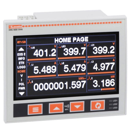 Lovato DMG9000D048, Power Analyzer with Widescreen Colour LCD, Auxiliary Supply 12...48VDC, Expandable with 3 Exp... Modules, Built-In RS485 and Ethernet Ports, Data Memory for Logging, Compatible with Easy Branch Power Monitoring System