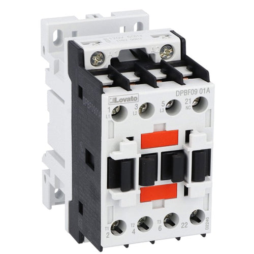 Lovato DPBF0901A23060, Non-reversing Three-pole Definite Purpose Contactor, 230VAC 60Hz Coil, 20A Full Load Amp, 1 NC Auxiliary Contact