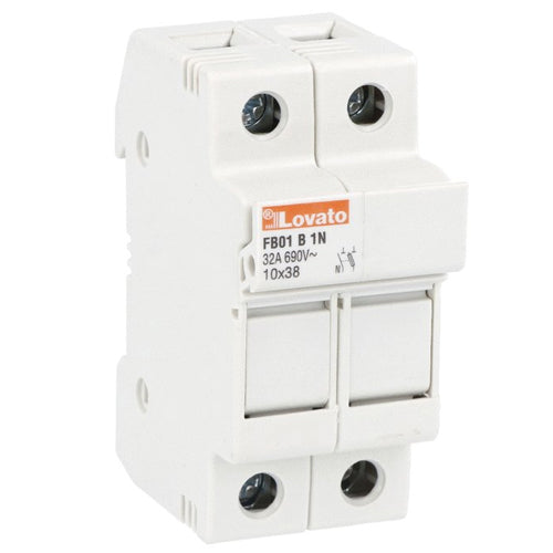 Lovato FB01B1N, Fuse Holder for 10x38mm Fuses, 32A Rated Current At 690VAC, 1P+N, Without Status Indicator, 2 Modules
