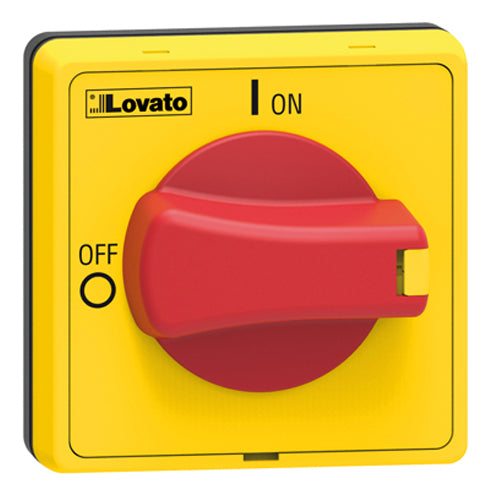 Lovato GAX68, Door Coupling Padlockable Rotating Handle with Lowered Selector, Screw Fixing, For GA016A...GA063SA, GA040D, GA016C...GA040C and GD...., IP65 (TYPE 4X), 5mm/0.2'', Red/Yellow