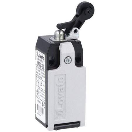 Lovato KMD1A11N, Limit Switch, K Series, One Bottom Cable Entry, Plastic Roller Side Push Lever, Dimensions to EN/BS 50047, Metal Body, Contacts 1NO+1NC Slow Action Make Before Break, 1/2'' NPT
