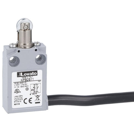 Lovato KPB2L11, Prewired Metal Limit Switch with 2m Long Cable, K Series, Top Metal Roller Push Plunger, Contacts 1NO+1NC Slow Action