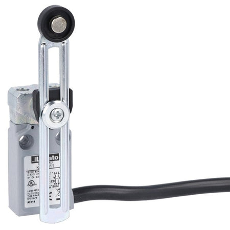 Lovato KPF1L11, Prewired Metal Limit Switch with 2m Long Cable, K Series, Adjustable Plastic Roller Lever Plunger, Contacts 1NO+1NC Slow Action