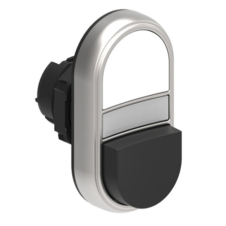 Lovato LPCBL7214, Double-Touch Actuator, White Indicator, Ø22mm Platinum Series Chromed Plastic, One Extended and One Flush Pushbuttons, Both Spring Return, White/Black