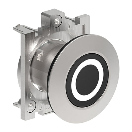 Lovato LPFB1102, Pushbutton Actuator with "O" Symbol, Spring Return, Ø30mm Platinum Series Flat Metal, Flush, Black