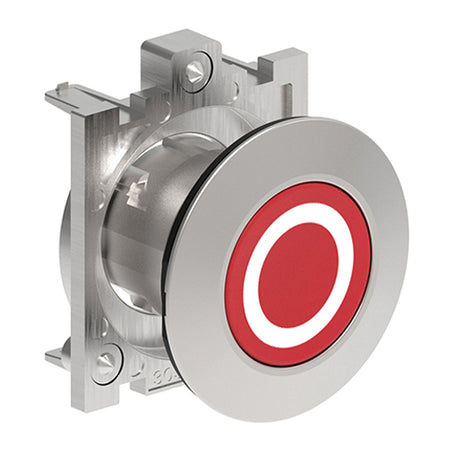 Lovato LPFB1104, Pushbutton Actuator with "O" Symbol, Spring Return, Ø30mm Platinum Series Flat Metal, Flush, Red