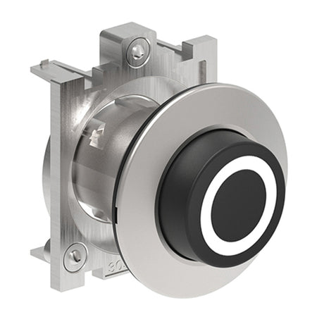 Lovato LPFB2102, Pushbutton Actuator with "O" Symbol, Spring Return, Ø30mm Platinum Series Flat Metal, Extended, Black