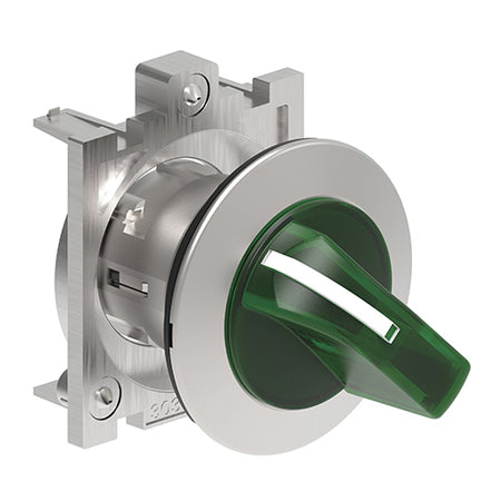 Lovato LPFSL1303, Illuminated Selector Switch Actuator, Short Lever, Ø30mm Platinum Series Flat Metal, 3 Position, 1 - 0 - 2, Green