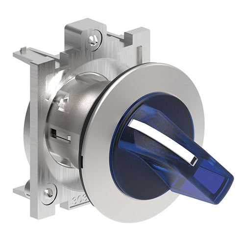 Lovato LPFSL1326, Illuminated Selector Switch Actuator, Short Lever, Ø30mm Platinum Series Flat Metal, 3 Position, 1 > 0 - 2, Blue