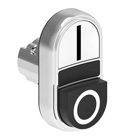 Lovato LPSB7224, Double-Touch Actuator with "I-O" Symbol, Ø22mm Platinum Series Metal, One Extended and One Flush Pushbuttons, Both Spring Return, White/Black
