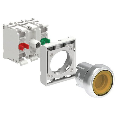 Lovato LPSBL105K11PB5, Illuminated Button Actuator in Kit, Spring Return, Flush, Yellow, With Mounting Adapter and Two Contact Elements, 1NO+1NC, Screw Termination, LED Integrated Lamp-Holder, Steady Light, 12...30VAC/DC