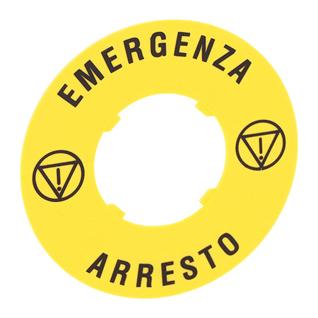 Lovato LPXAU114, Plastic Disk for Mushroom Head Pushbuttons, ''EMERGENCY ARRESTO'' Text, Ø60mm/2.4in, 2 Packs