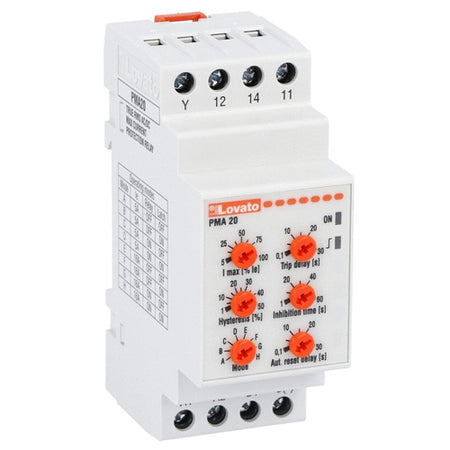 Lovato PMA20240, Current Monitoring Relay for Single-Phase System, AC/DC Maximum Current Control, Automatic or Manual Reset, Auxiliary Power Supply 24...240VAC/DC, 5A or 16A