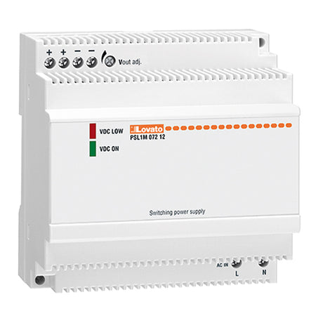 Lovato PSL1M07212, Modular Switching Power Supplies with Maximum Functionality and cULus PSL Series, Single-Phase, Rated Output Voltage 12VDC, Rated Output Current 6A, Output Power 72W