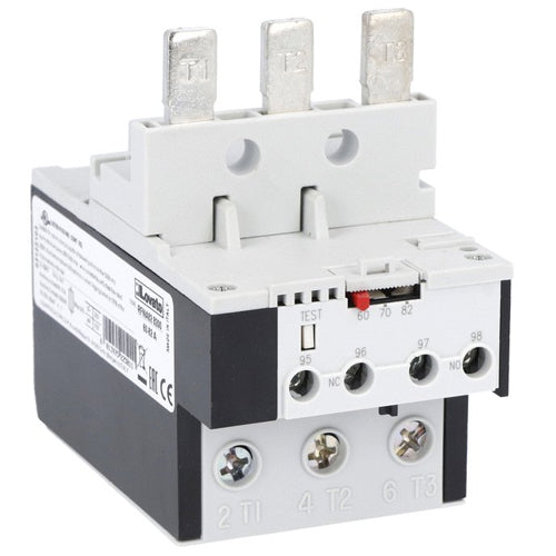Lovato RFNA826500, Thermal Overload Relay, Non Phase Failure/Non Single Phase Sensitive, Three Poles (Three Phase), Automatic Resetting, Direct Mounting on BF40-BF94 Contactors, Adjustment Range 46...65A