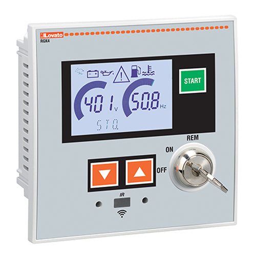 Lovato RGK420SA, Engine Protection Controller, Stand Alone Gen-Set Controller, 12/24VDC, USB/Optical and Wi-Fi Point Programming Port on Front, Icon LCD Display, Built-In 3 Position Key Switch