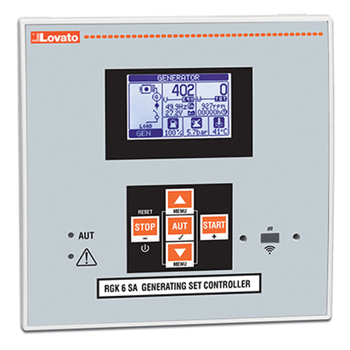 Lovato RGK600SA, Stand Alone Gen-Set Controller, 12/24VDC, USB/Optical and Wi-Fi Point Programming Port on Front, Graphic LCD Display, With Pick-Up Speed Input