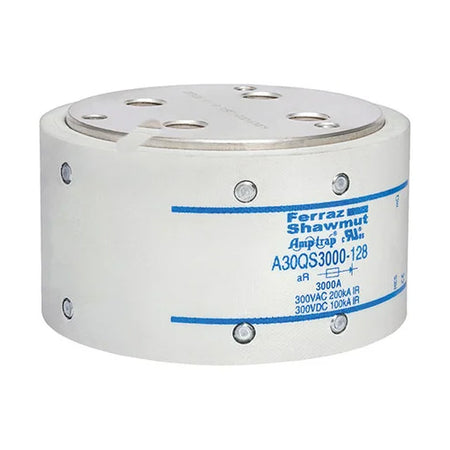 Mersen A30QS3000-128, Semiconductor Protection Fuse, High-Speed, Fast Acting, 300VAC/DC, 3000A, Hockey Puck, Bolt-In