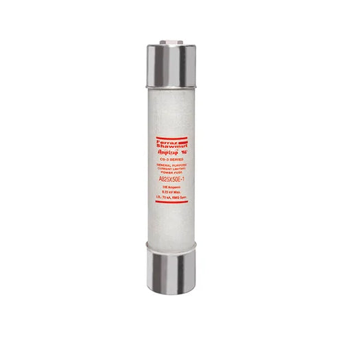Mersen A825X50E-1, Medium Voltage E-Rated Fuse, Ferrule Mount, Transformer Protection, 8250VAC, 50A, 1 Barrel, With Visual Indicator