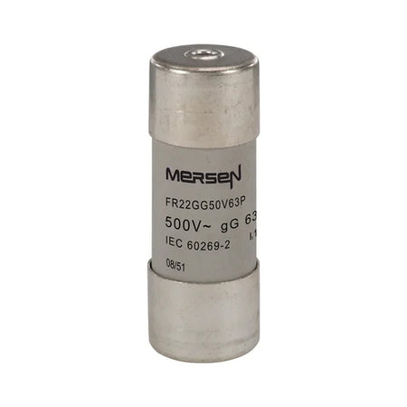 Mersen FR22GG50V63P, gG Cylindrical Fuse-Links, Size 22x58mm, 500VAC/250VDC, 63A, With Striker