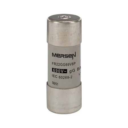 Mersen FR22GG69V8P, gG Cylindrical Fuse-Links, Size 22x58mm, 690VAC/250VDC, 8A, With Striker
