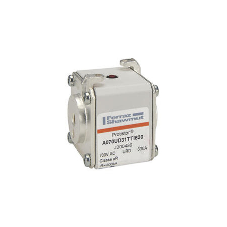Mersen J300480, Square Body High-Speed Fuse, Fast Acting, Size 31 aR, 690/700VAC, 630A, With Striker Flush ends UNC threads