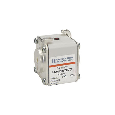Mersen K300481, Square Body High-Speed Fuse, Fast Acting, Size 31 aR, 690/700VAC, 700A, With Striker Flush ends UNC threads