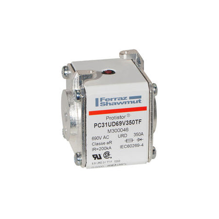 Mersen M300046, Square Body High-Speed Fuse, Fast Acting, Size 31 aR, 690/700VAC, 350A, With Striker Flush ends metric threads