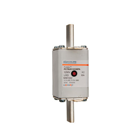 Mersen M301242, Square Body High-Speed Fuse, Fast Acting, Size 70 aR, 1250/1300VAC, 80A, Striker Plain Blades