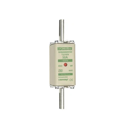Mersen NH0AM69V50, DIN NH Standard fuse-link aM, Size NH0, 690VAC, 50A, live tags Double indicator