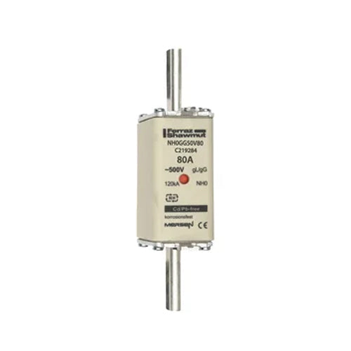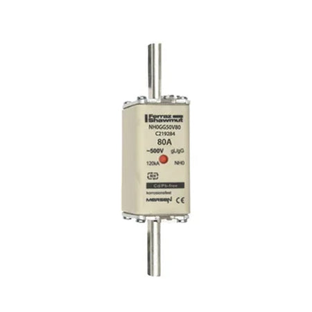 Mersen NH0GG50V80, DIN NH Standard fuse-link gG, Size NH0, Size NH0, 500VAC/250VDC, 80A, live tags Double indicator