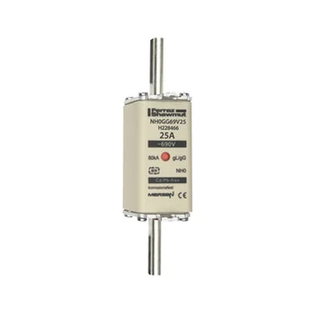 Mersen NH0GG69V25, DIN NH Standard fuse-link gG, Size NH0, 690VAC/400VDC, 25A, live tags Double indicator