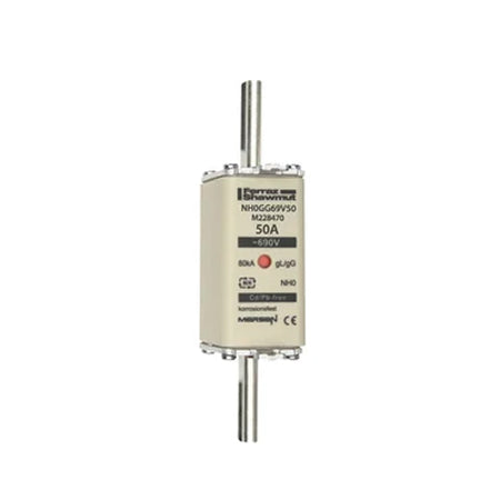 Mersen NH0GG69V50, DIN NH Standard fuse-link gG, Size NH0, 690VAC/400VDC, 50A, live tags Double indicator