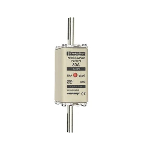 Mersen NH0GG69V80, DIN NH Standard fuse-link gG, Size NH0, 690VAC/400VDC, 80A, live tags Double indicator