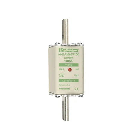 Mersen NH1AM69V100, DIN NH Standard fuse-link aM, Size NH1, 690VAC, 100A, live tags Double indicator
