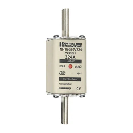 Mersen NH1GG69V224, DIN NH Standard fuse-link gG, Size NH1, 690VAC/400VDC, 224A, live tags Double indicator