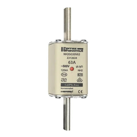 Mersen NH2GG50V63, DIN NH Standard fuse-link gG, Size NH2, 500VAC/250VDC, 63A, live tags Double indicator