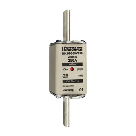Mersen NH2GG69V250, DIN NH Standard fuse-link gG, Size NH2, 690VAC/250VDC, 250A, live tags Double indicator