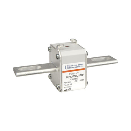 Mersen S300212, Square Body High-Speed Fuse, Fast Acting, Size 32 aR, 690/700VAC, 1000A, With Striker Slotted Blades long