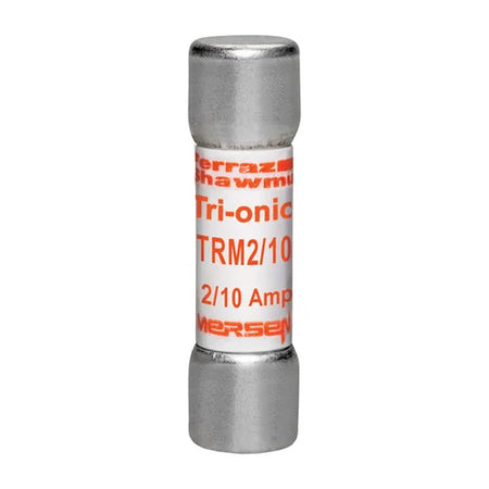 Tri-Onic® TRM time-delay midget fuses are rated 250 volts AC and are offered in ampere ratings from 1/10 to 30A. They have 12 seconds time-delay at 200% rating to provide supplemental protection of small motors, small transformers and other high inrush loads, plus many other 250 volt applications. (Not for Branch Circuit Protection).