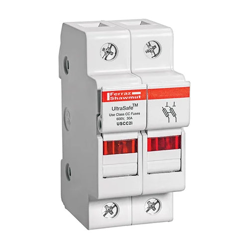 Mersen USCC2I, UltraSafe USCC Class CC Fuse Holder, 600VAC/DC, 30A, 2-Pole, with Indicator