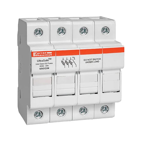 Mersen USCC3N, UltraSafe USCC Class CC Fuse Holder, 600VAC/DC, 30A, 3-Pole+N, without Indicator
