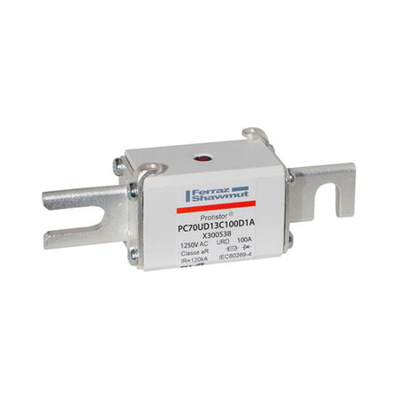 Mersen X300538, Square Body High-Speed Fuse, Fast Acting, Size 70 aR, 1250/1300VAC, 100A, With Striker DIN 110 Blades