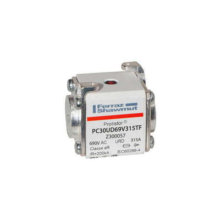 Mersen Z300057, Square Body High-Speed Fuse, Fast Acting, Size 30 aR, 690/700VAC, 315A, With Striker Flush ends metric threads