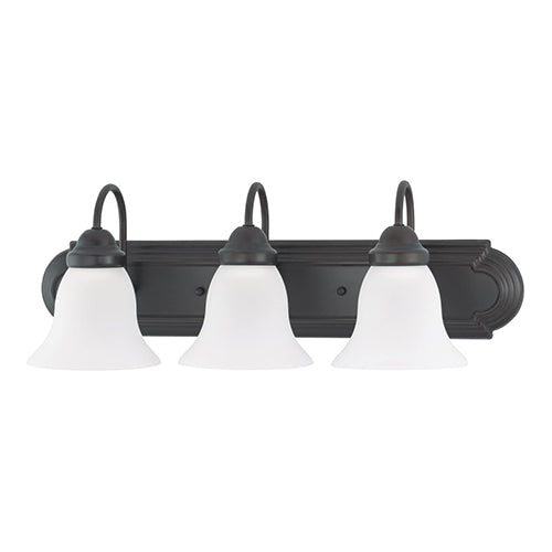 Satco 60-3162, Ballerina, 3 Light, 24" Vanity Light Fixture, 100W, 120V, Medium Base, Frosted White Glass, Mahogany Bronze Finish