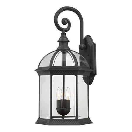 Satco 60-4969, Boxwood, 3 Light, 26" Outdoor Wall Lighting Fixture, 60W, 120V, Candelabra Base, Clear Beveled Glass, Textured Black Finish