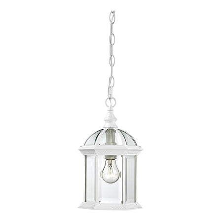 Satco 60-4977, Boxwood, 1 Light, 14" Outdoor Hanging Lantern Lighting Fixture, 100W, 120V, Medium Base, Clear Beveled Glass, White Finish