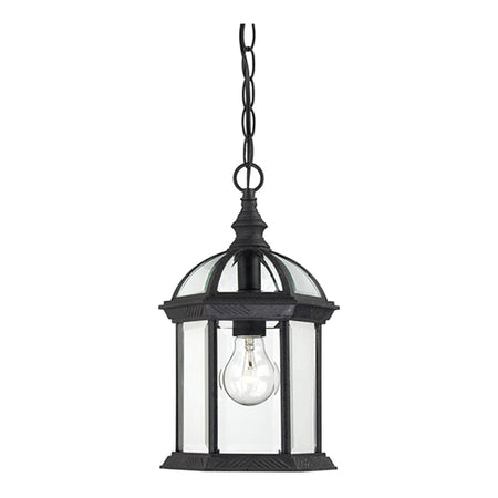 Satco 60-4979, Boxwood, 1 Light, 14" Outdoor Hanging Lantern Lighting Fixture, 100W, 120V, Medium Base, Clear Beveled Glass, Textured Black Finish