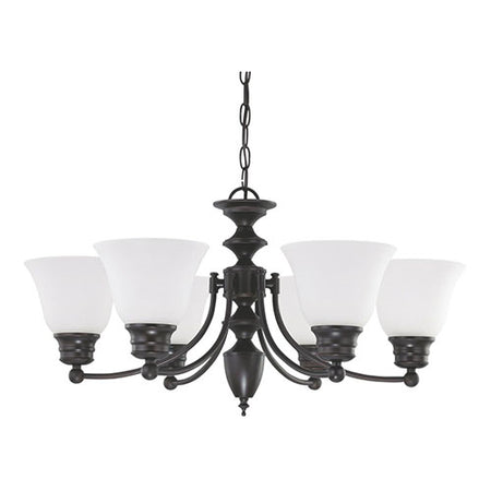 Satco 60-6042, Empire 6-Light 26" Chandelier with Frosted White Glass, 60W, 120V, Mahogany Bronze Finish